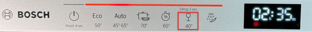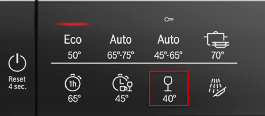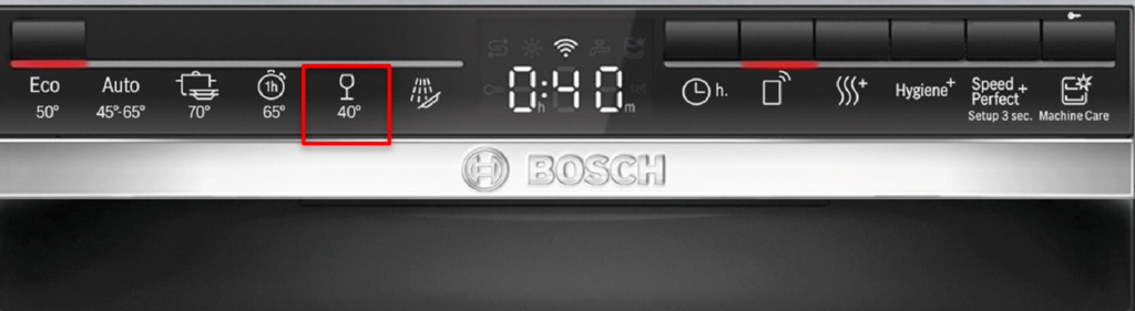 Bosch食器洗い機には、繊細かつ多様なグラスを優しく洗い上げるグラス40℃コースがあります。