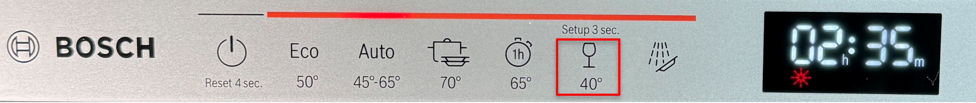 Bosch食器洗い機には、繊細かつ多様なグラスを優しく洗い上げるグラス40℃コースがあります。
