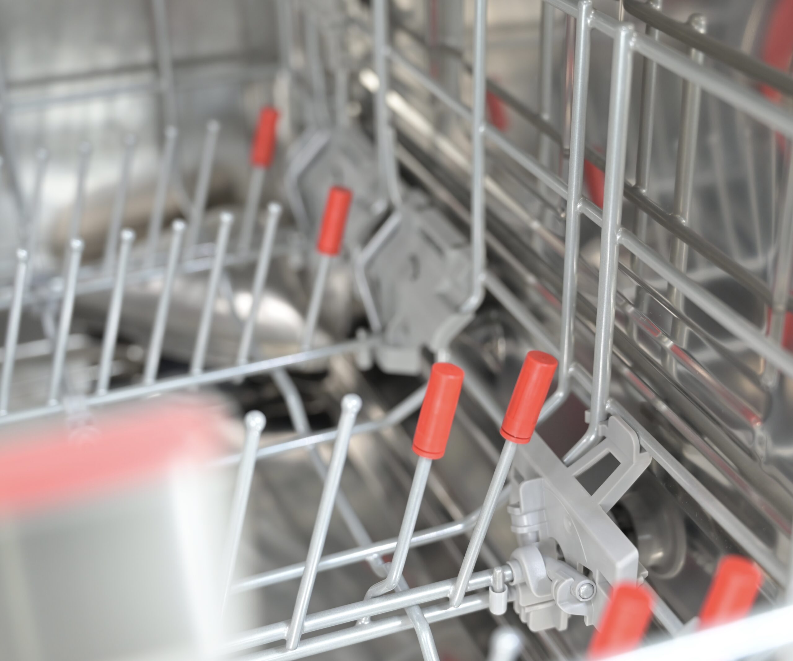 ラックとワイヤーブラケットは倒してグラスをかける設計になっているので難なく洗浄いただけます。