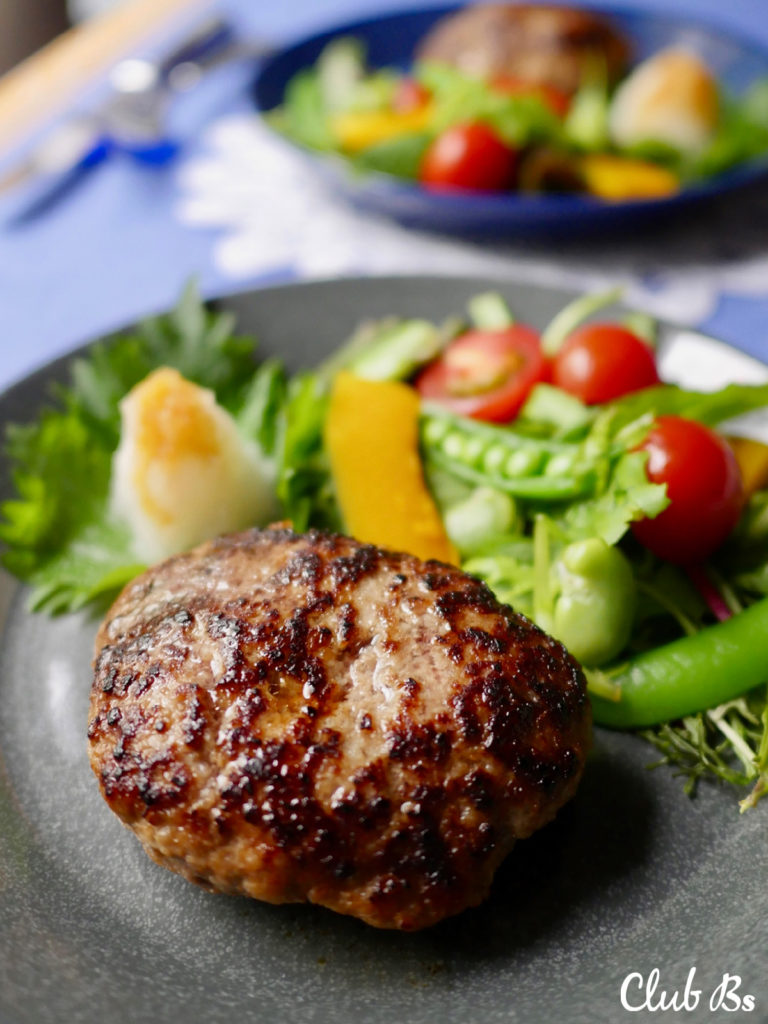 5. テフロンのフライパンを中火にかけて熱し、ハンバーグを焼く。焼き色がついたら裏に返し、火を弱め、蓋をして中まで火を通す。